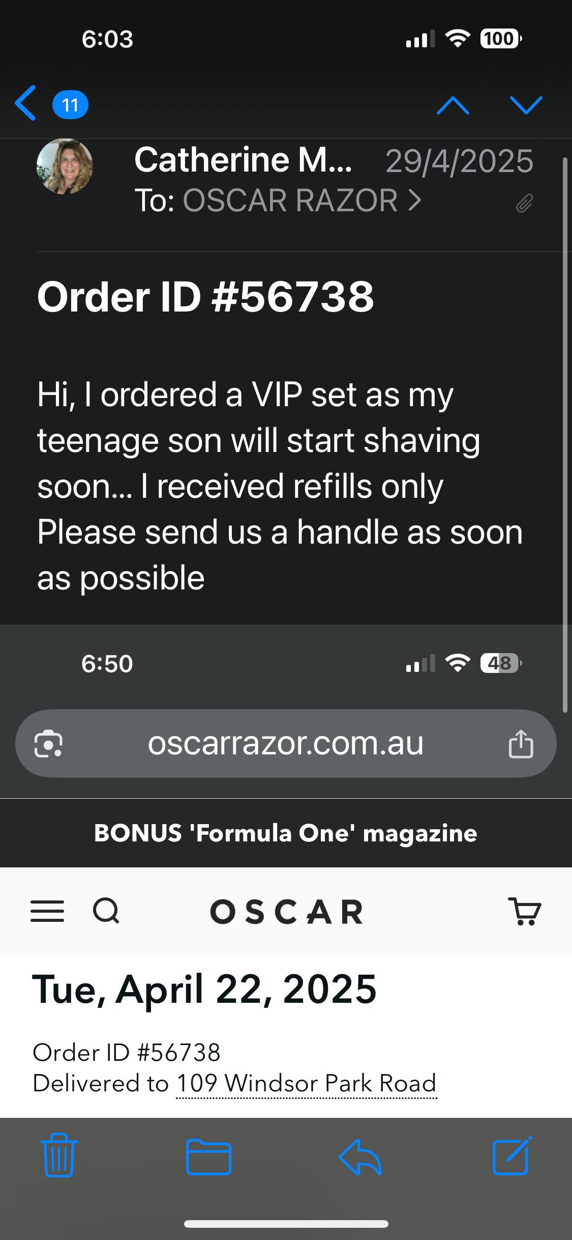 All renewals are of razor cartridges only. Renewals cannot be sent to a Parcel Locker.